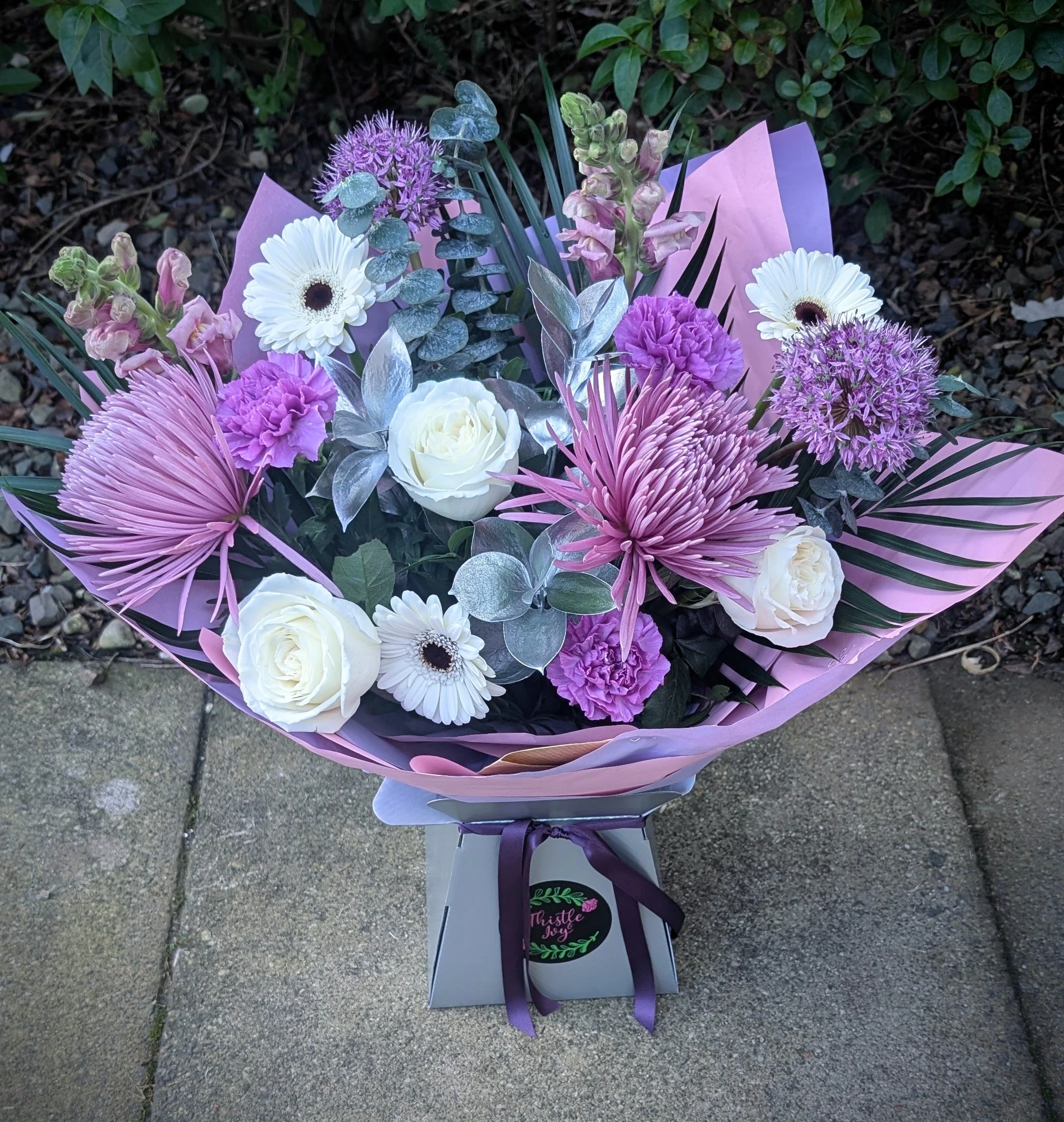 Pretty lilacs and purples for something a little bit different for a special mama, wrapped in complimentary colours in a lilac box or bag.